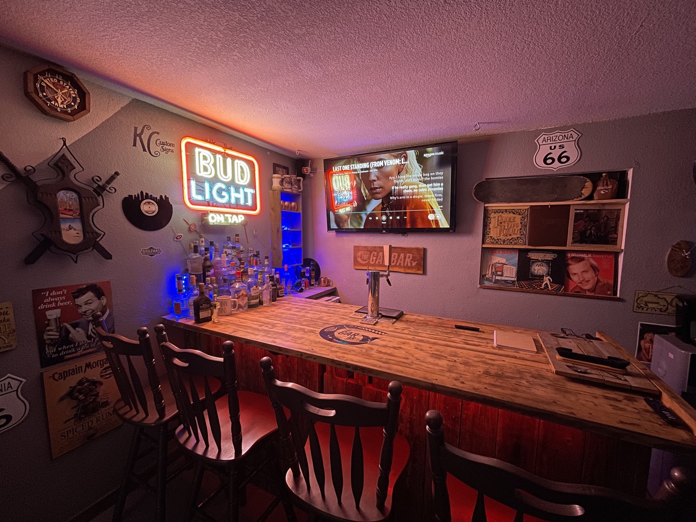 7. Turn on We Drink Buds / Turn OFF We Drink Buds (Bud Light Sign Above Bar)
