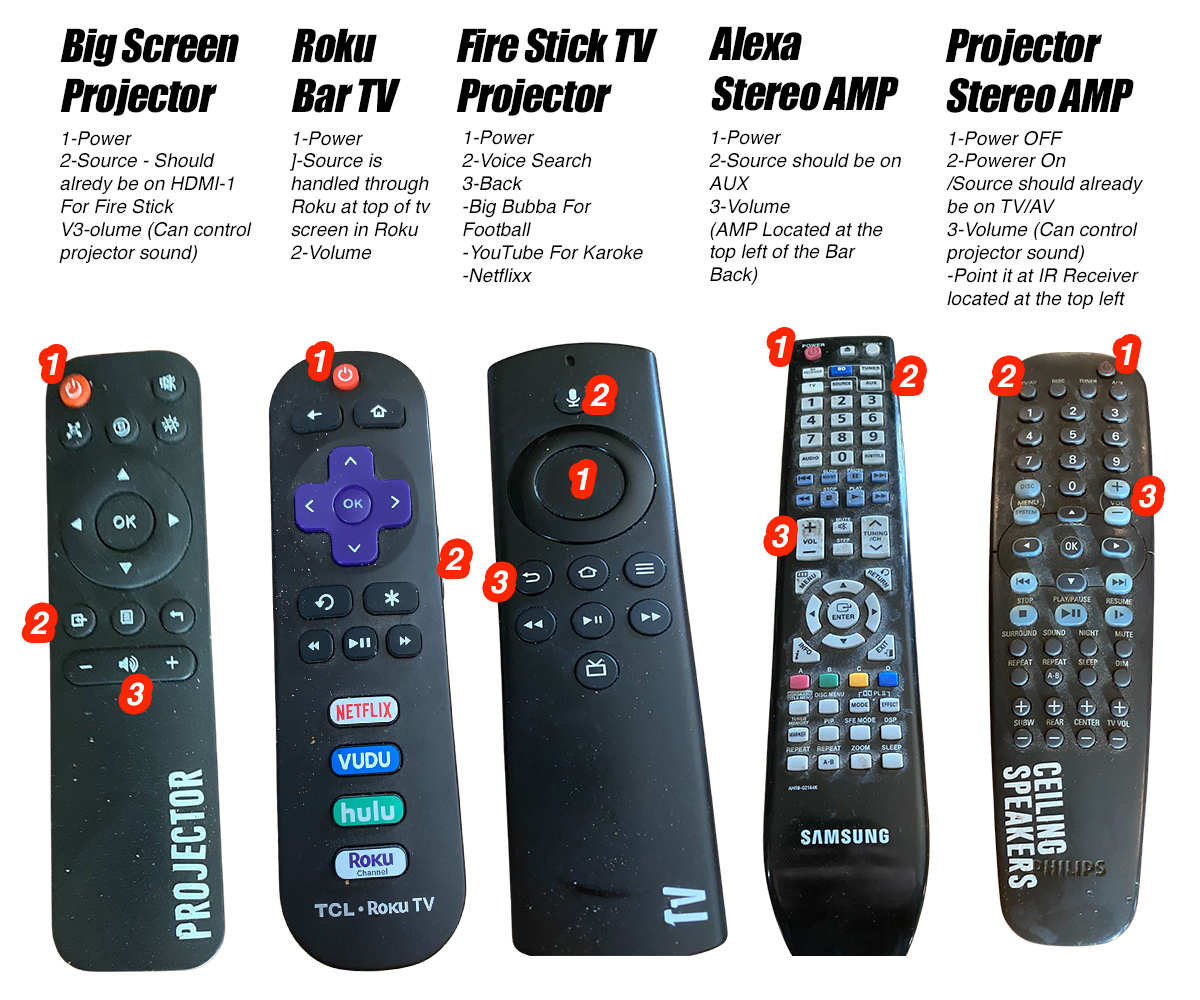 1. Turn on the Alexa Stereo AMP at the far top left behind bar, and adjust volume by asking Alexa to Turn it to Volume 1-10.